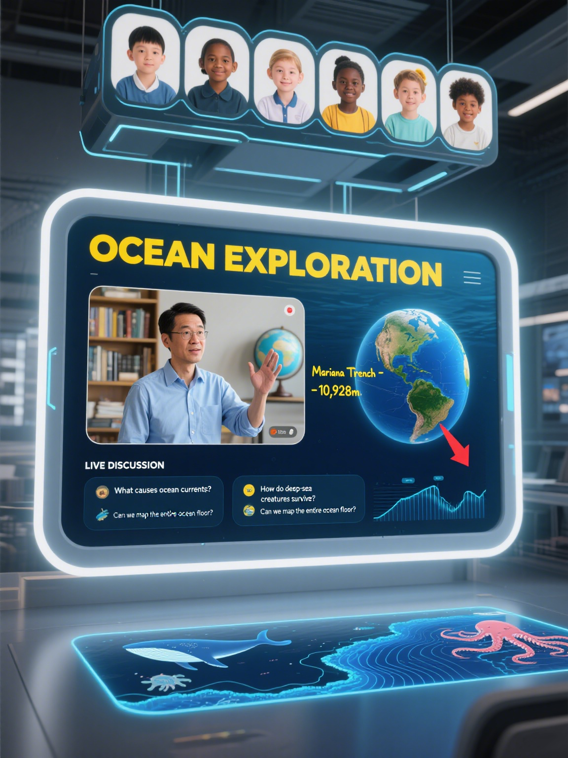 A visually engaging image depicting a smart education platform interface with interactive dashboards and data visualization tools, showcasing real-time student progress and personalized learning paths.